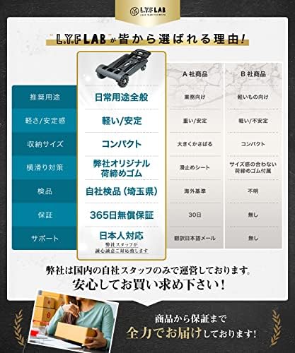 L.Y.F LAB Folding Carry Cart, Supervised by Camping Instructors, Lightweight, Small, Compact, Outdoor, 4 Wheels, Dolly (*Includes our original cargo tightening rubber)