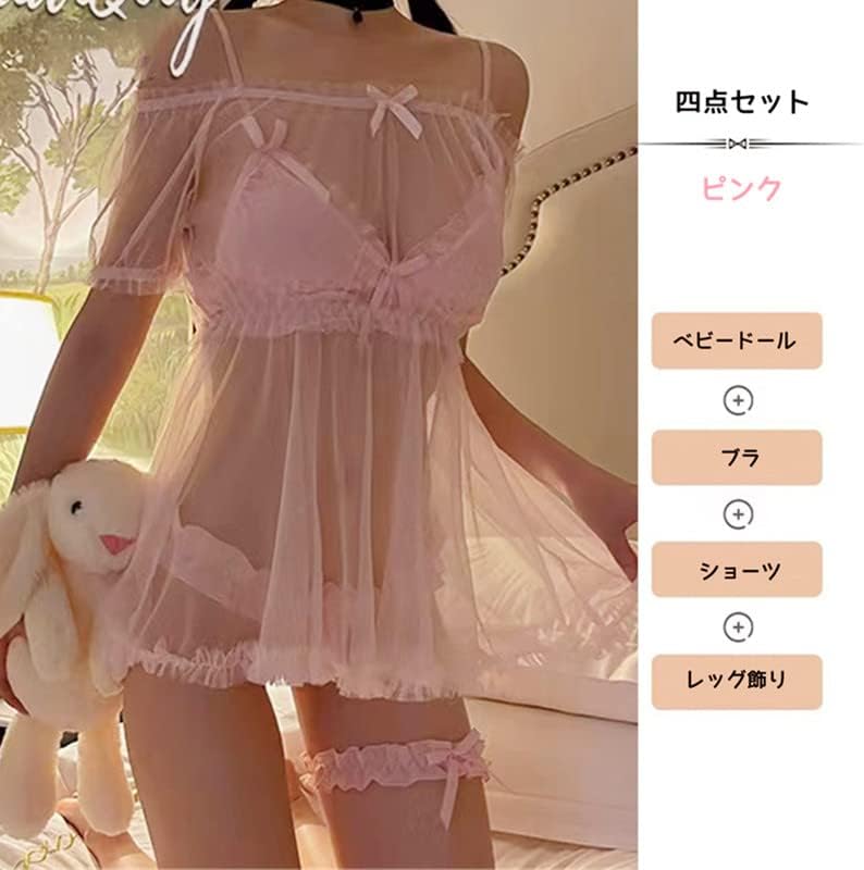 [SARADEMUNT] 221209T Babydoll Women's Sexy Lingerie Set Off Shoulder Lace Half Slip Sexy Underwear Sheer Extreme Cute Popular Large Size Camisole Negligee 221209T